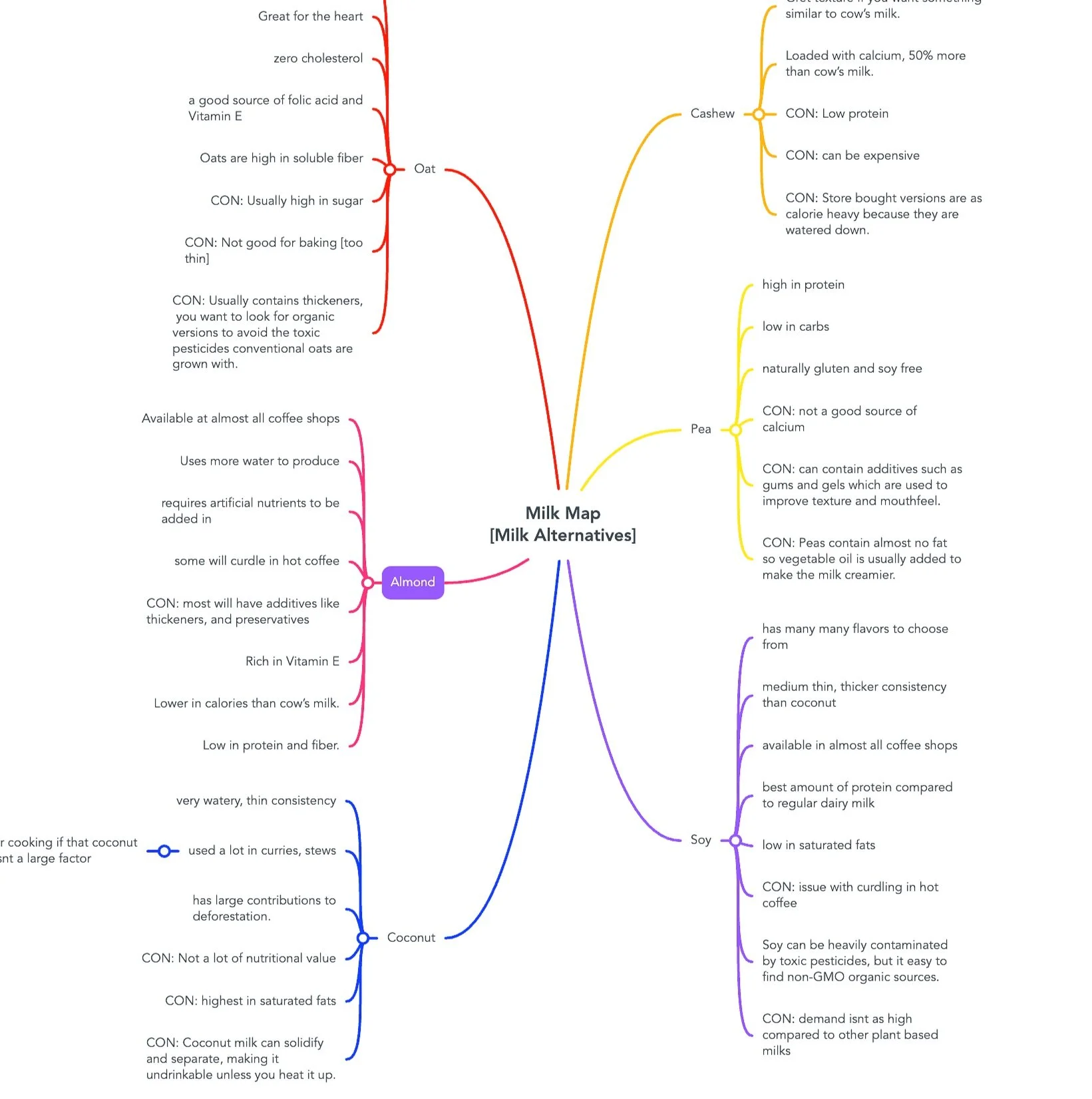 After I thought of this idea, I made a rough edit of an action map showing the different alternatives to milk to help narrow down the scope of the project. I also conducted research about various kinds of milk, to ensure that the eLearning was accurate. After that, I jumped into Adobe XD to create a concise visual mockup and play with the visual design aspects of the project. As this is a concept project, I did not need to wait for approval before moving into the final phase.
