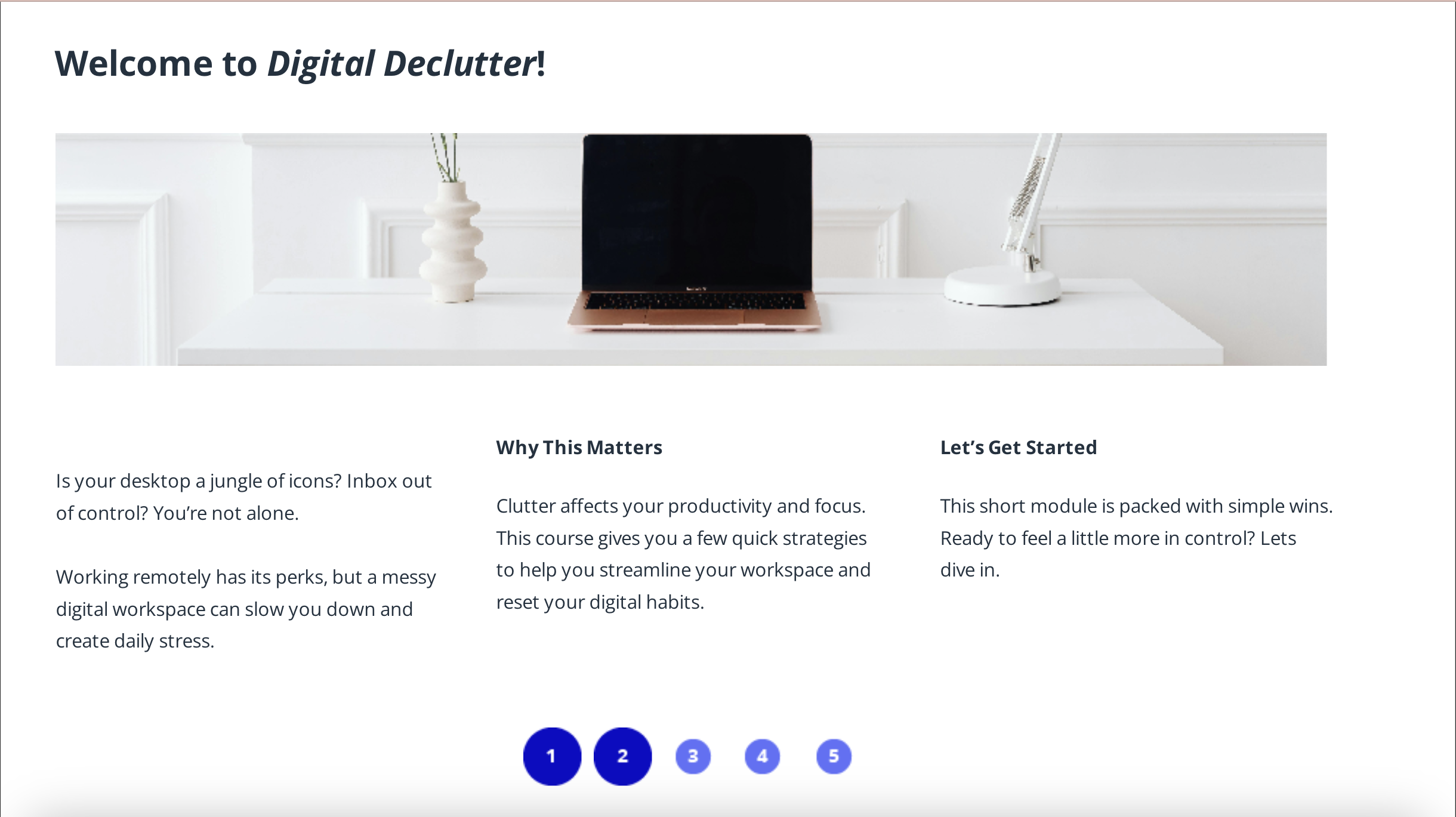 This short learning experience was created to help busy professionals reclaim productivity by decluttering their digital workspace.